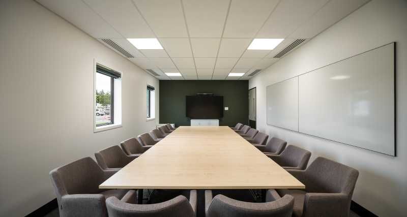 Suspended Decortech tile and Rondo exposed grid ceilings.